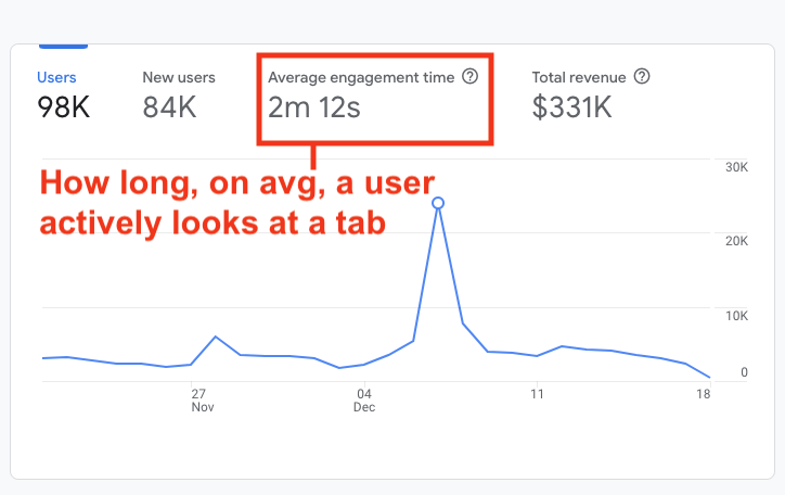 It measures how long a user actively looks at a tab (or an app). It’s a simple change but it’s a much more effective way to measure how people actually engage with your website.