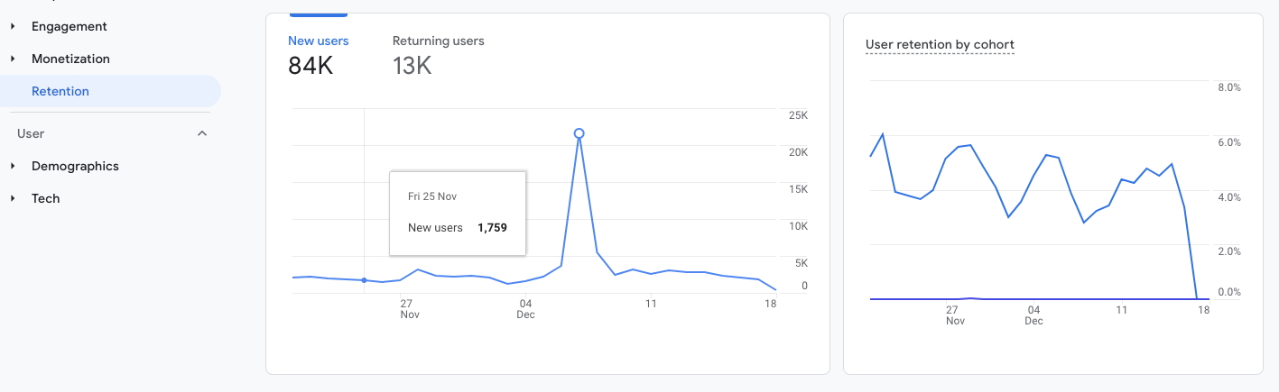 The retention report shows you how engagement and revenue change over time.